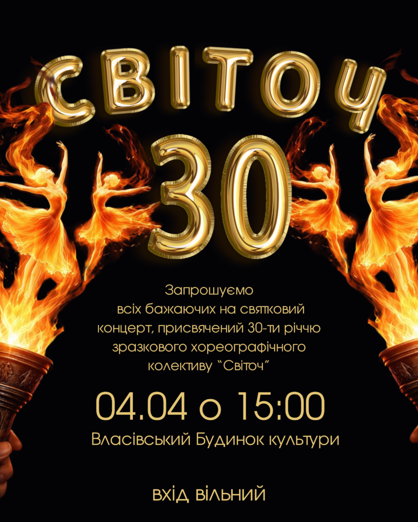 Зразковий хореографічний колектив “Світоч” запрошує всіх бажаючих на святковий концерт, присвячений 30-ти річчю колективу!